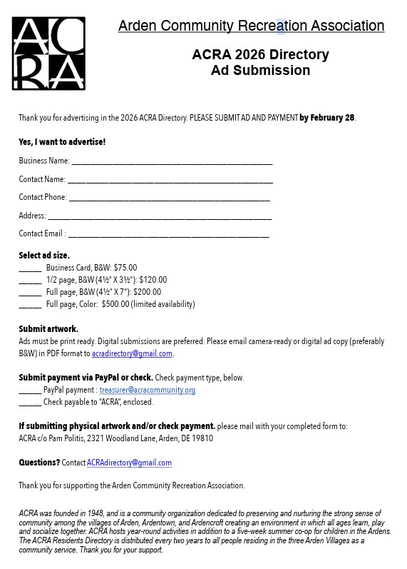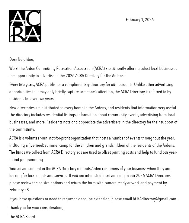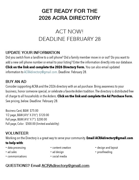 2026 ACRA directories will be delivered by mid-May throughout the Ardens.