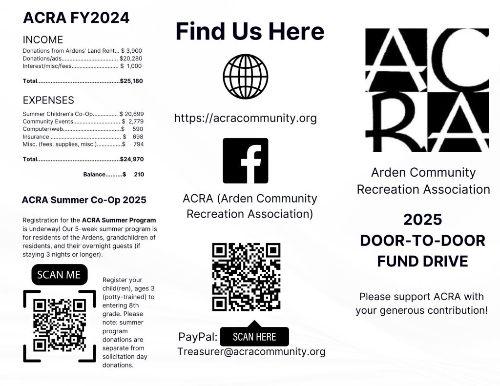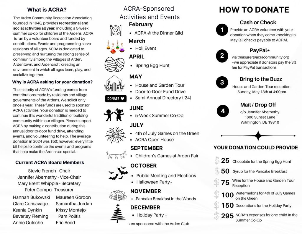 The majority of ACRA funding comes from contributions made by residents and village governments of the Ardens. We solicit only once a year and the funds are used to sponsor ACRA activities.